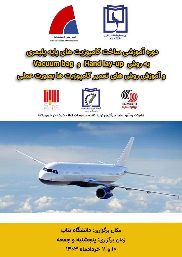 دوره آموزشی ساخت کامپوزیت های پایه پلیمری به روش hand-layup و vaccuum bag و آموزش روش های تعمیر کامپوزیت بصورت عملی